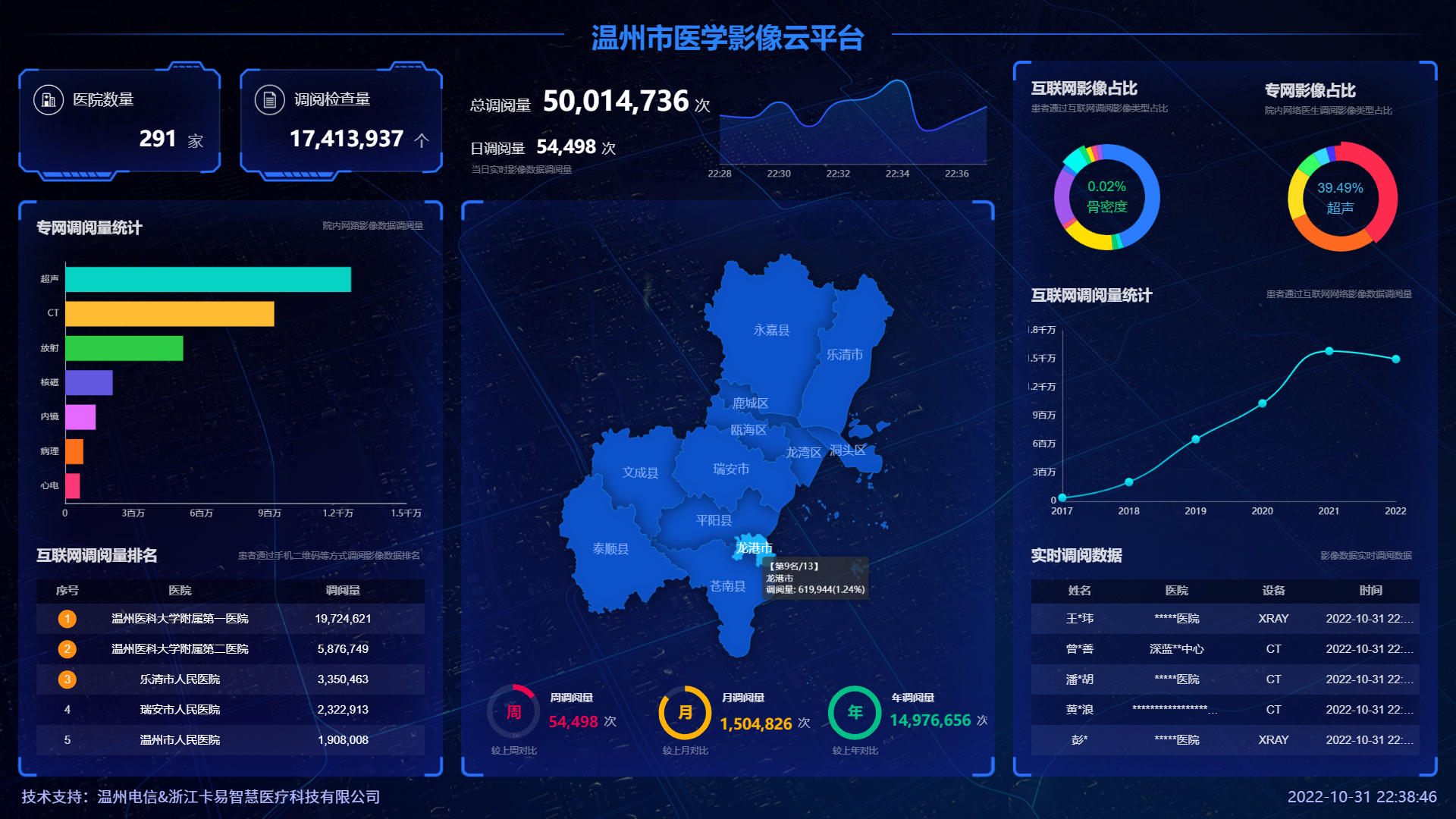 浙江省內(nèi)最大云影像平臺 日均移動調(diào)閱量7.5萬次 平臺總調(diào)閱量超過一億次 2018年浙江省醫(yī)療衛(wèi)生服務(wù)領(lǐng)域“最多跑一次”改革十佳案例(影像云唯一)